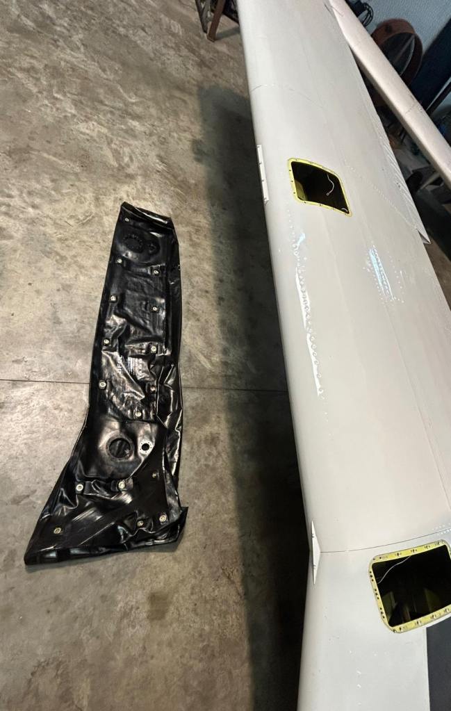 While completing the annual, we identified a fuel bladder leak. After discussing the issue with the owner, we discovered all four fuel bladders had been installed for over 41 years. Based on this, the customer chose to move forward with replacing all four bladders in both wings, an important proactive step to ensure long-term reliability and safety.